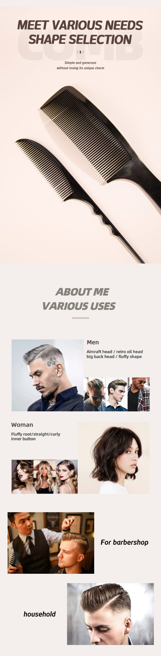 Comb tooth density is high, hair cutting and hairdressing as desired, comfortable grip.